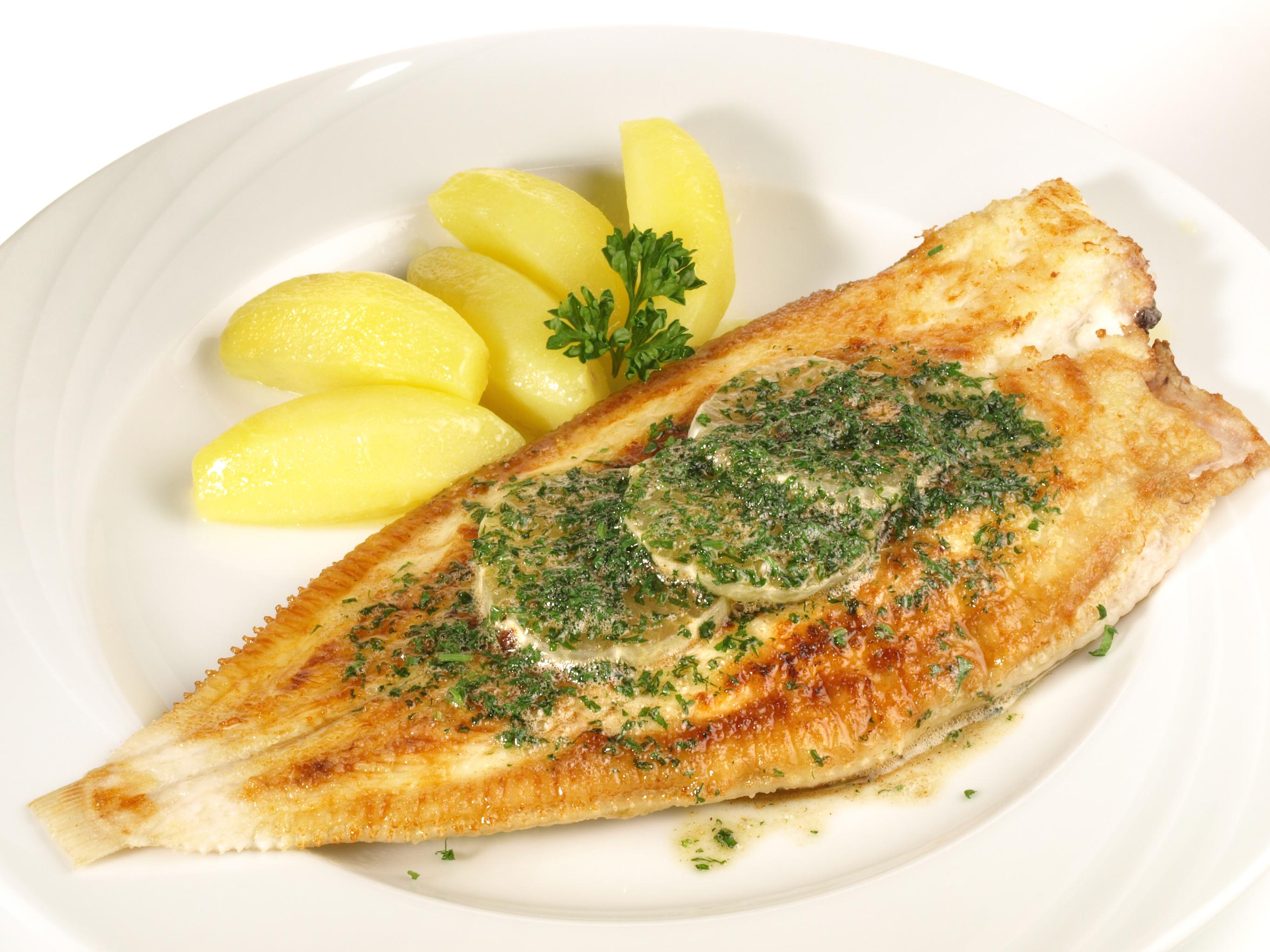 el rodaballo. También llamado Lenguado común. Es pescado blanco, de forma plana